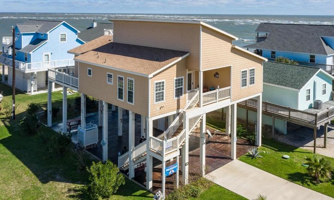 Offering sea views, Coral Gem - 360 Water Views from the Crows Nest! is an accommodation set in Galveston, 1.3 km from West Beach and 37 km from Schlitterbahn Galveston Island Waterpark. The air-conditioned accommodation is 100 metres from San Luis Pass Beach, and guests benefit from complimentary WiFi and private parking available on site. The holiday home features 3 bedrooms, a TV, an equipped kitchen with a dishwasher and a microwave, a washing machine, and 1 bathroom with a bath. Towels and bed linen are featured. Guests at the holiday home can enjoy cycling nearby, or make the most of the garden. Moody Gardens is 38 km from Coral Gem - 360 Water Views, while Pleasure Pier is 42 km away. The nearest airport is William P. Hobby Airport, 112 km from the accommodation.