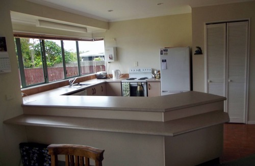 The distinctives about this holiday home over others, is its closeness to town (two streets over from Pak'nSave) and its large, flat, fenced section. This makes it ideal for two families to stay together and have plenty of parking on site for cars, boat, trailer, etc, as well as being safe for young children. Easy walk to town.