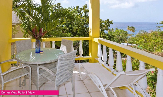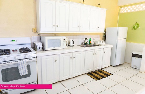 Hibiscus Heights is Ranked #3 of 97 in Tobago on trip advisor - Corner View, a bright and airy one bedroom apartment adjoining "Artist's Studio" and also accessible from a separate entrance; offering a large kitchen/lounge area, a small utility area, with its own washer/dryer and private sea-viewing terrace with outdoor table and chairs for a perfect morning breakfast or a sundown 'alfresco' dinner, It's the perfect escape for the winter. Steps to the village, restaurants, bars and beach. Offering a queen bed and in the living room a double sofa bed.