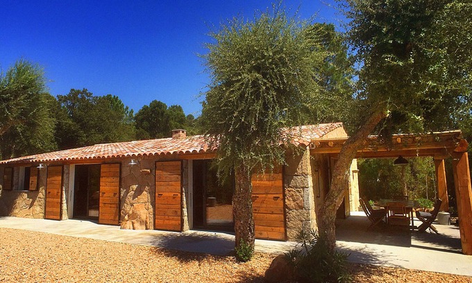 Character house in the middle of the maquis, very quiet, ideally located on the edge of the small village of Muratello, in the town of Porto-Vecchio, equidistant from the south and north beaches of Porto-Vecchio, 20 minutes from the rivers, 30 min from the mountain.