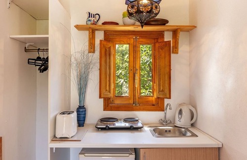 The apartment is a studio with two single beds, a bathroom with a shower and a small kitchen. This studio has its own terrace with magnificent views of the mountains.