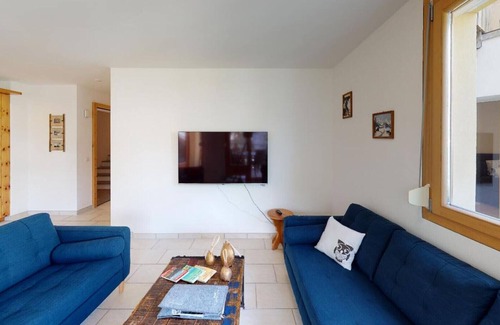 The apartment of almost 80m2 is located on the 1st floor with sunny balcony and large terrace. In the same house there are three other apartments, which are also in the rental of Engadin Booking. The apartments can also be booked together.