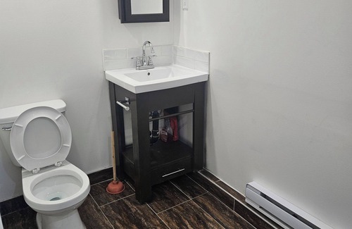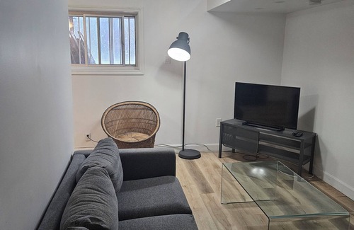 Super clean. Quiet and private full kitchen toilet shawer washer&dryer private entrance no parking patio outside situated in St.leonard est Montreal storage in the apt électrique heating hot water perfect for good night sleep