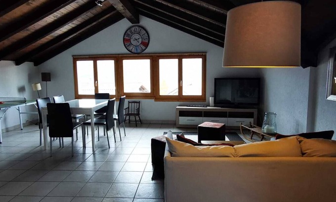 My place is in the middle of a typical valaisan village. In an extremely quiet neighborhood. It is located under the roof with a beautiful view on the mountains with a full sun exposition as the flat is exposed full south in the sunniest region in Switzerland. The flat has 2 bedroom, 1 bathroom with bathtub, 1 toilet and a spacious living room. Lots of kikes, cycling tours, skying etc... are available around the house.