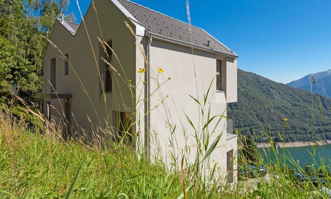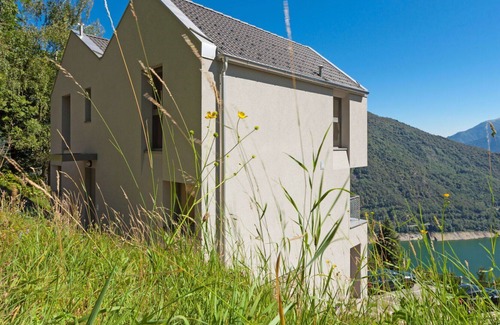 Mergoscia 10 km from Locarno: Modern 2-family house "Allaventura", 2 storeys, detached, built in 2015, surrounded by trees. On the outskirts Mergoscia, in a quiet, sunny position on top of a hill, in a cul-de-sac, in the countryside, south-east facing position. In the house: storage room for bicycles, central heating system, washing machine (for shared use). Motor access to the grounds (mountain road). Stepped path (25 steps) to the house. Parking at the house, public parking 50 m on the road extra. Shop 4.7 km, grocery 4.7 km, bus stop "Linie 312" 300 m, railway station "Tenero" 9.1 km. Walking paths from the house 10 m. Nearby attractions: Parcoavventura, Gordola, Flaconeria, Locarno. Well-known ski regions can easily be reached: Cardada. Well-known lakes can easily be reached: Lago di Vogorno, Lago Maggiore, Lago di Lugano, Lago di Como. Hiking paths: Valle Verzasca, mergoscia.nl. Please note: car recommended. Baby equipment on request (extra). Animals in the neighbourhood.