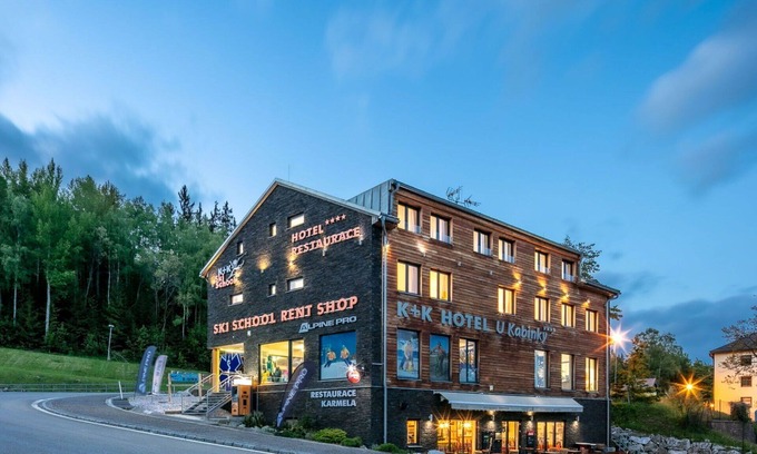 The property "U Kabinky" is a comfortable aparthotel located in the resort area of Dvůr Králové Nad Labem, Czech Republic. It offers a detached and sunny position, just 100 meters from the skiing area. The aparthotel features a yard, internet WiFi, tennis court, and an installment plan option. You can enjoy amenities such as a storage room for skis, central heating system, and room cleaning services upon request (extra charge applies). Breakfast is available on request for an additional fee.