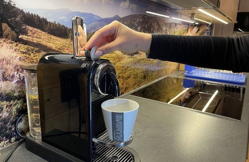 The apartment comes equipped with a kitchenette that includes an oven, dishwasher, four ceramic glass hob hotplates, microwave, freezer, and an electric coffee machine. It also features a shower room with a toilet and a separate guest toilet. You can enjoy meals or drinks on one of the two balconies, which offer views of the surrounding countryside. The property provides Wi-Fi internet access, reserved covered parking, and an electric vehicle charging station.