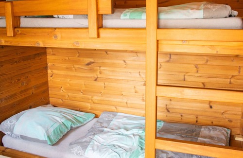 2-room mobile home. 1 room with 1 double bed and satellite TV. Kitchen-/living room (2 ceramic glass hob hotplates, kettle, microwave) with 1 x 2 bunk beds. Shower/WC. Heating, air-conditioning. Terrace furniture. Facilities: Internet (WiFi, free). 2 pets/ dogs allowed.