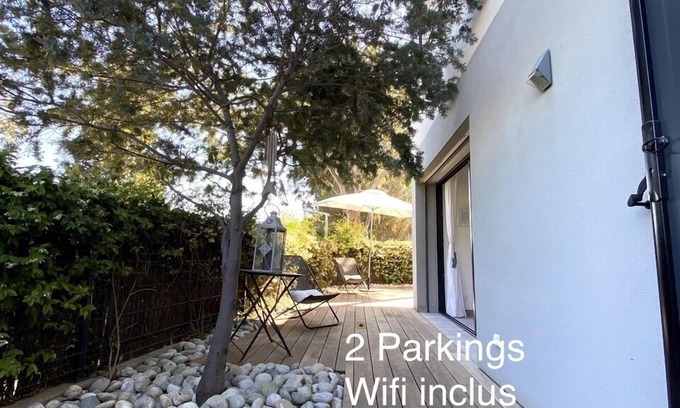 Apartment of 57m2-located on the ground floor-small condominium -50m from the beach-Garden of 84m2-seen sea.