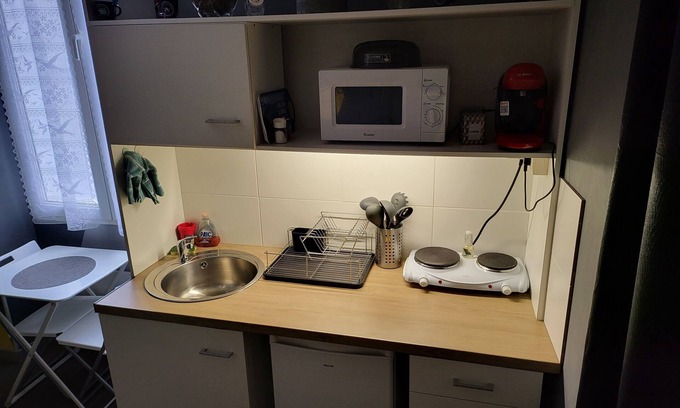 The kitchen is equipped with a stovetop and a refrigerator, as well as a coffee maker, an electric kettle, and a microwave. Enjoy the free WiFi and TV. Bathroom amenities include a hair dryer, towels, and toilet paper. Other amenities at this 1-bedroom, 1-bathroom rental include a sofa bed, bed sheets, heating, and a dining table.