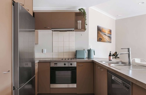 The master bedroom features a plush king bed and private ensuite, while the second bedroom and main bathroom provide flexible options for couples, friends or business travellers. There’s also a washing machine for longer stays.