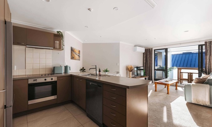This thoughtfully appointed 2-bedroom, 2-bathroom apartment offers a restful stay with everything you need for a comfortable visit. Enjoy soft morning sun in the cosy living area, unwind with the Smart TV and fast Wi-Fi, or start your day with a barista-style coffee.