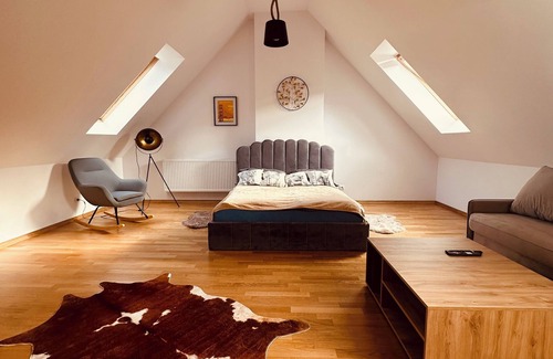 Full equipped, modern apartment in the heart of Karkonosze mountains. Walking distance to the city center. Sky lift is located only 200 meters. The apartment is equipped with a garage for two cars. Walking trails are available just outside the apartment