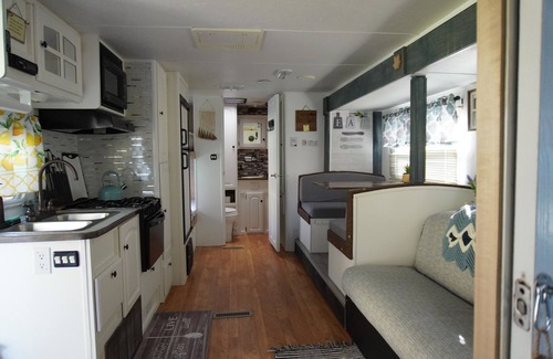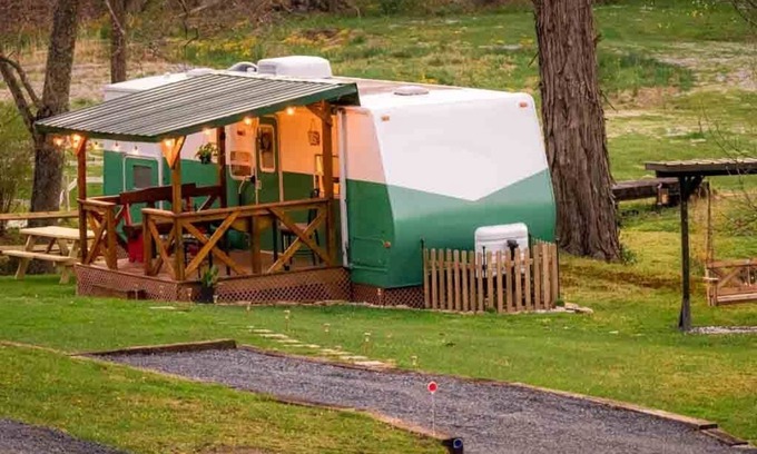 Cotch and listen to critters all night in this reclaimed camper under a sugar maple and alongside a small creek. Half acres of outdoor space with own parking and walkway, 2 miles from walking trails, bike trails and kayak launch, and mins from the Summersville Lake, long point trail, meadow river and New river. Located off a residential gravel road leading to a dead end. A outdoor cat "Lucy" lives on site she is super friendly but not overbearing. The creek and a fence separates your space.