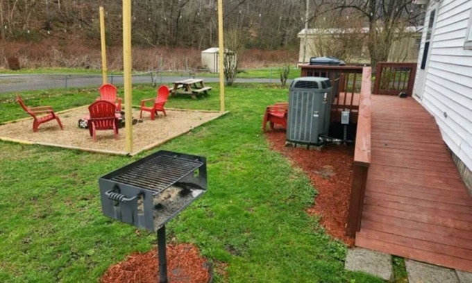 All our cottage have a fire pit with chairs provided. We also furnish wood to burn but ask for a donation to help keep things fully stocked up. This cottage also has a horse shoe pit on the right side of the cottage. Also both cottage 1 and 2 are fenced in together with plenty of parking between both cottage but if over run is needed there is a large parking are behind the cottages. All our cottage come with good FLAT parking areas to accommodate trailers, vehicles and UTV's. We look forward to welcoming you to our place.
