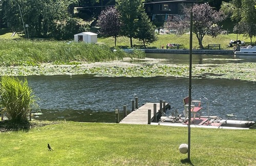 Charming decor with lake cottage in mind. Nice patio with picnic table and charcoal grill. Boat dock included. Resort sitting with 600 plus feet of lake frontage. Bring your boat or rent one of our 5 pontoons. Great fishing right off the dock. Join the many who anchor and swim at the sand dunes/ sand bar. Evenings around the fire pit are a must.