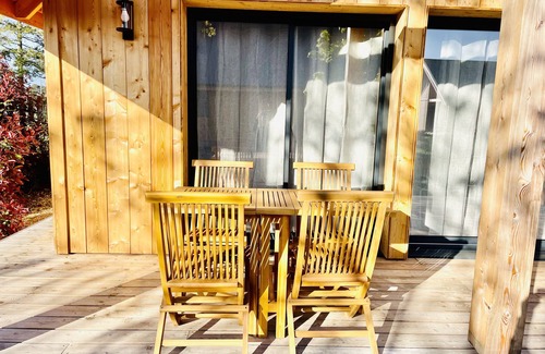 The cottages are equipped with a kitchen with microwave, fridge, vitroceramic hob, coffee maker, kettle and toaster. For the security of our clients, we have put in place a digital safe. We want you to feel at home. The cottages are located in a sports complex with 2 covered tennis courts and 3 open-air clay courts, 2 squash courts and a fully equipped gym. Customers have access to preferred pricing. Lake Geneva and Chataigneraie Park are both 300 metres away. We are 8 minutes from the city centre of Thonon-les-bains and 20 minutes from the first ski resort of Bernex.