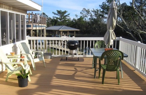 This 3-bedroom/2 bath cottage has it all! Launch your boat from the nearby boat ramp and tie it off at the dock for some of the best fishing around. With everything you need here for your retreat, you may just want to stay in and cook from the fully-equipped kitchen or BBQ on the large deck. For cooler nights, warm up by the fireplace located in the open living/kitchen/dining room. Enjoy your morning cup of coffee on the screened porch, read your favorite book from the swing, fish right off the dock and take in the breathtaking sunsets in the evening. For your more adventurous side, explore the area, which in just a quick drive you'll find gulf beaches, the historic Old Town Bay St Louis with great restaurants and shops, and two casinos. And just an hour away, you can visit New Orleans. This home has all the conveniences you'll need for your stay, including a laundry. What more could you want?