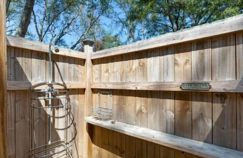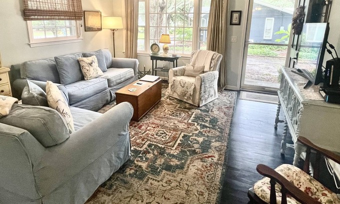 The full bath is in the hallway for easy access by everyone in your party and features a beautifully refurbished antique claw foot tub . The kitchen is fully equipped with everything you need and the living room is charming and comfortable. AND.... a private outdoor shower for rinsing the sand and salt away.
