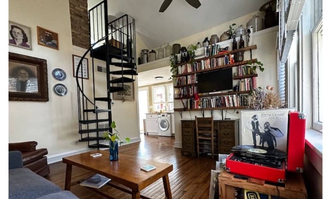 Enjoy the serenity of our secret garden from your private guest house. Enjoy privacy on the covered sun porch. Watch butterflies float by in the pollinator garden. Listen to evening quiet on the patio overlooking the garden. Spin some records from the eclectic collection. Stroll the leafy neighborhood. Stop for a beer at award-winning Temperance Brewery. 5 minute walk to Divvy bike station gives you access to all of Chicago and CTA/Metra train. Short ride to lakefront, Northwestern, downtown.