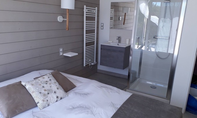 3 bedrooms: 1 with double bed 160 * 200 + integrated shower room; 2 bedrooms with possibility of double beds or single beds. Sheets and towels are provided. Large terrace with a barbecue. Playground for children + petanque ground located next to the house. Beautiful walks are to be done !!