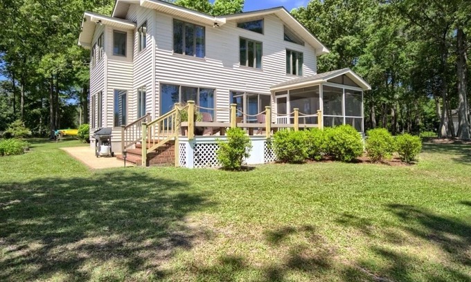 Cottage on Hudgins Creek looks out Stutts Creek to the Chesapeake Bay has 4 Bedrooms , 3 Bathrooms, and max occupancy of 7 people. The minimum rental for this property is 1 nights, but this can change depending on the season you plan on staying. Previous guests have given good rated it, and VRBO labeled it a top-rated House because of the excellent services rendered by the owner or manager of this House, and has consistently provided great experiences for their guests. Most families or guests that use it recommend it to their friends and some of them are repeat guests. House has a friendly neighborhood, and the Moon has interesting places to visit. If you want to learn more about the House in Moon, such as places to visit and things to do nearby, you can check below to learn more.