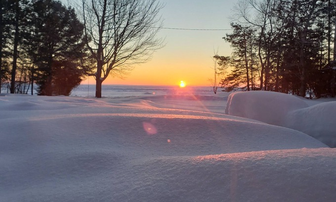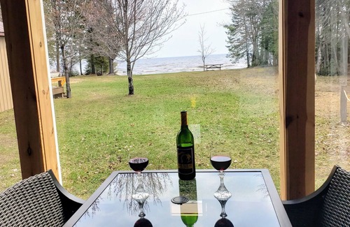 Experience the beauty and excitement up north living! Our home on Lake Superior Whitefish Bay has a deep 175' shared lakeside yard with 100' of lake frontage. A campfire pit, picnic table, bench and hammock is provided lakeside to enhance your waterside living experience. Canada can be seen in the distance.