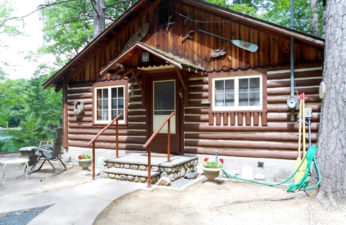 The cottage has a private waterfront, six acres of primarily wooded property and beautiful lake views. The rental includes a private dock, 16ft aluminum rowboat and two kayaks. There is an open concept living, dining, and kitchen area. We have two bedrooms with double beds, and bathroom with shower. The property is includes plenty of outdoor seating with an outdoor fireplace and yard games for family fun. This seasonal retreat is part of our family heritage and was built by our father upon his return from WWII with local logs and fieldstone. We offer it for rent because we are not able to use it all of the time. It is very well kept and has one of the best views on the lake.