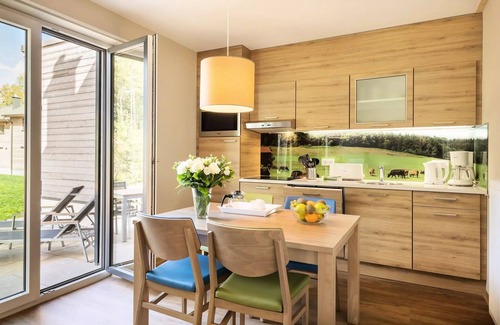 Conditions: maximum 2 pets per accommodation. Baby Kit : on request Bedding : included for Premium Cottages, VIP, Exclusive and Wellness Towels : included for VIP Cottages, Exclusive and Wellness Beds made on arrival : included for Premium Cottages, VIP, Exclusive and Wellness Final cleaning : included (excluding kitchen corner and garbage bins) Number of stars Water park : Aqua Mundo with wave pool, wild river, water climbing wall, water games... Car park : parking at the entrance of the Domaine Possibility of bike rental : see on-site rates and conditions Near airport : Stuttgart Airport #STR (136.4 km), Zurich Airport #ZRH (172.3 km) Restaurant : several on-site catering services Spa : Deep Nature Spa - à la carte services Tourist tax (surcharge) : supplement from 2 years: € 1.79 per person/day Multisports ground : Beach volleyball, football... kettle Coffee maker : filter coffee machine Cooked Floor : 1 Microwave oven Toaster Dishwasher Household included Number of bedrooms : 2 Number of single beds : 4 Number of pieces : 3 Number of toilets : 2 Number of bathroom : 1 Cooking plate Fridge Surface (m²) : 60 Television Terrace Wireless