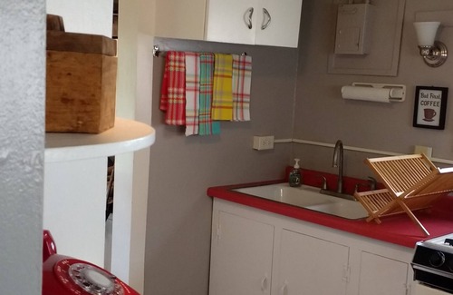 The home has been decorated with a mix of whimsy and local history. It has a comfortable queen sized bed, air conditioner, new furnace, and washer and dryer. Please note that the bathroom is small, as shown in the photos. While most find the bathroom manageable, if you are a larger/taller person or have mobility issues you might have a difficult time.