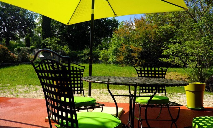This cottage has an independent access, the living room overlooks a large terrace equipped with a pergola, a table with chairs and deckchairs all surrounded by a large garden to share with the owners Eliane and Bernard who remain on the first floor and will be happy to welcome you.