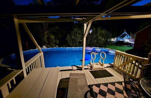 During the summer you can enjoy the above ground pool with a deck or the screened in back porch off the cottage. Hot tub is open all year round. There are yard games, tree swings and a basketball hoop to enjoy with family and friends