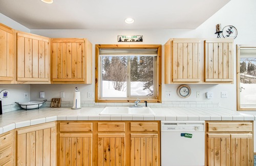 Kick back in this comfy McCall home. Downstairs, enjoy the living room with its vaulted ceilings, cozy couches, a fireplace and plenty of room for the whole bunch. The large windows give a beautiful view of the landscape. And the sliding glass door gives easy access to the porch where you can sit on the porch swing, grill something delicious, and take in the fresh air. The kitchen, beautiful in appearance, is well-equipped for any cooking need during your stay. All bedrooms feature new beds as well (2024)!