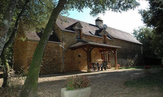 Pretty typical PERIGOURDINE HOUSE with POOL Stone (3 star ranking prefectural) for 6, adjoining another cottage (swimming pool with 2 cottages), THE BIG FISH *** faces the forest and allows you to enjoy total privacy with respect to other tenants and is located 8 km from Sarlat, 4 km from CARLUX, in a very large park. Enjoy the comfort and quiet of the place, while a few miles from Sarlat and therefore the major sites and the various activities offered by our department (Castles, Abyss, Caves, Gardens, etc.)