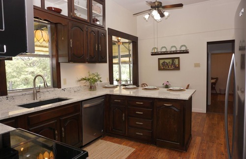This family homestead located on one of the most spectacular spots on the San Marcos River was built in 1920 and has been in the family of the current owners now since 1950. Lovingly restored and brought into modern times by the very people that were raised within the walls, the history and sense of peace and pride that permeate the space is apparent to all that enter.