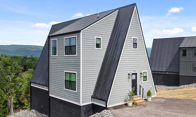 One of SIX new stunning A-frame cabins located in Chattanooga Valley, Georgia, ON the bluff overlooking Lookout Mountain! Our ONLY dog friendly A-Frame for up to 2 dogs max under 50lbs.(please read dog rules below)This 2,200 square foot, 3-bedroom 3-bathroom home will impress you every step of the way with its rustic and inviting farmhouse touches, brand-new furnishings, and thoughtful architectural design. The home invites natural light and warmth throughout, providing a one-of-a-kind escape into nature, with incredible views of the outdoors during every season! Enjoy this very family friendly home that offers a theater room, hot tub and the fireplace on back porch!