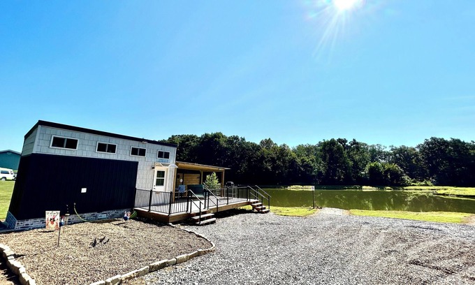 * PLEASE READ entire description before booking* Private country container cabin on private pond. If you need a quiet place to unwind and enjoy the serenity of peace & relaxation, this is the place for you. The container cabin has a huge deck complete with privacy wall over looking a private pond.