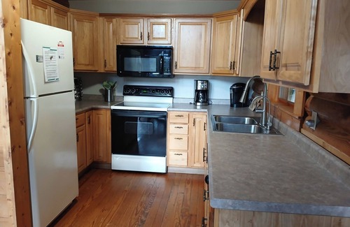 GORGEOUS LOG HOME ON FOUR VERY PRIVATE ACRES with a real stone wood burning fireplace, pool table, foosball table, and two living spaces! Escape from it all with NO neighbors right next to you to interrupt your vacation! Best value, most privacy, and easiest access in the area! Only cabin in the area with a pool table and four bedrooms. Please note that we only rent our cabin with access to all three floors, including the first floor with the pool table, foosball, and large extra living space.