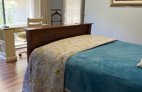 THE ROOM HAS A LARGE DESK WITH ETHERNET CONNECTION,AND USE OF A PRINTER - IT'S OWN PRIVATE REFRIGERATOR, AND THE ENTIRE HOUSE HAS REVERSE OSMOSIS WATER, LANDSCAPED WITH FRUIT TREES, HOME GARDEN, ORCHIDS AND COCONUT TREES.