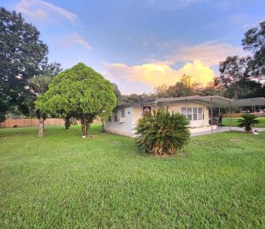 Country Home in the City with an Acre of Land is located in Zephyrhills, just 8.8 miles from Saddlebrook Golf Course and 19 miles from University of South Florida. This property offers access to a patio and free private parking. The property offers barbecue facilities and outdoor furniture. With free Wifi, this 3-bedroom vacation home features a flat-screen TV, a washing machine, and a fully equipped kitchen with a dishwasher and oven. The air-conditioned unit at the property features a bath and a dressing room. The accommodation is non-smoking. 1-800 Ask Gary Amphitheatre is 24 miles from the vacation home, while Adventure Island is 25 miles from the property. Lakeland Linder International Airport is 27 miles away.