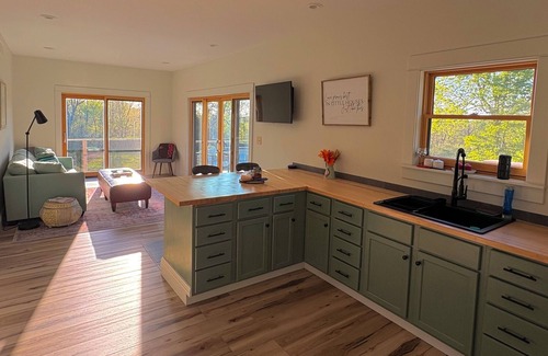 This South Bend country pool house boasts 1 inviting bedroom. The living room features a cozy sofa bed for extra guests. Guests can enjoy amenities like the heated pool, grill, fire-pit, kitchenette, full bath, washer/dryer, hair dryer, iron, and HVAC. Experience the magic of South Bend at our marvelous house. Quiet setting but just minutes from the Notre Dame campus.