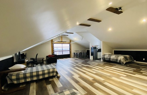 Brand New Barn, set on family farm land that dates back to 1845. The upper level living space is open concept that has everything you need for a relaxing time. A 10 minute drive from downtown Barrie and 10-30 minutes from multiple ski resorts, steps from endless snowmobile & hiking trails.