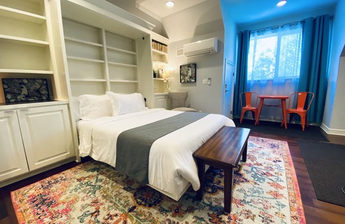 The studio has a custom built Murphy bed with Queen size pillow top mattress. The mattress and all pillows are protected with an allergen reducing/dust mite and bed bug proof encasement. All linens are washed in Charlie's Laundry Soap, a green, biodegradable, chemical and fragrance free product.