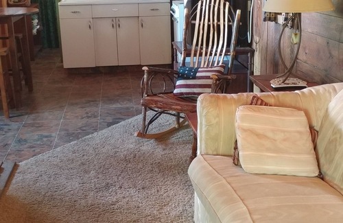 Small, quaint cabin perfect for a couple to enjoy. Lakefront on the banks of beautiful Table Rock Lake. Spacious hot tub outside on the deck. Small kitchen area with all the essentials. Boat dock available just a short hike down the hill. Full size bed with quality linens, and towels provided. Directv and wireless internet.