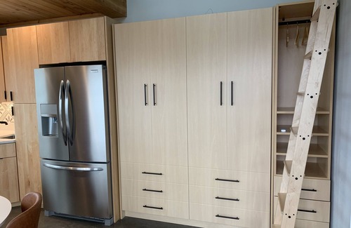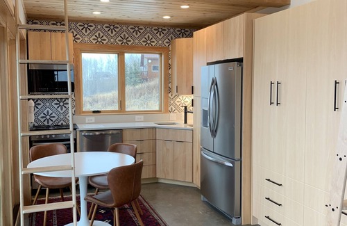 The private garage apartment is perfect for your couples ski, bike, or hiking getaway. Located ON Mt. Crested Butte, just steps from the ski area and hiking/biking trails, this ski in/ski out apartment has a full kitchen and bath, two loft areas, and a queen size organic Murphy bed. It also has a private deck and private three person hot tub, a full kitchen with dishwasher, oven, range, and full size fridge, and 300 degree views of the Elk Mountains and Mt. Crested Butte.