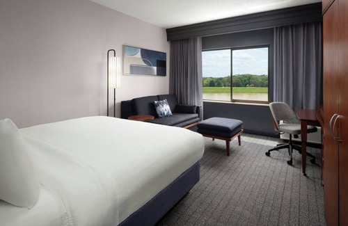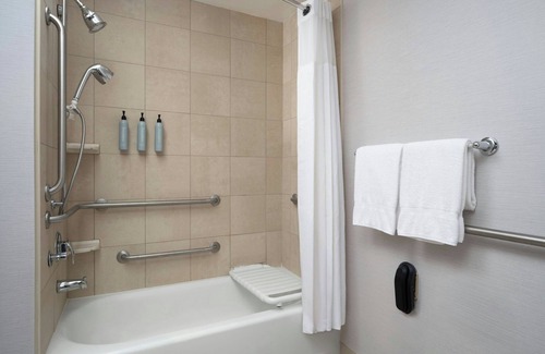 Courtyard by Marriott Dayton-University of Dayton offers 101 accommodations with safes and coffee/tea makers. Pillowtop beds feature premium bedding. 32-inch Smart televisions come with pay movies and Netflix. Refrigerators and microwaves are provided. Rooms have partially open bathrooms. Bathrooms include shower/tub combinations, complimentary toiletries, and hair dryers.