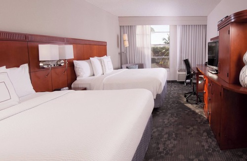 Courtyard Miami in Coral Gables by Marriott offers 165 air-conditioned accommodations with laptop-compatible safes and coffee/tea makers. Beds feature pillowtop mattresses. A pillow menu is available. 37-inch LCD televisions come with premium satellite channels and pay movies. Guests can make use of the in-room refrigerators and microwaves. Bathrooms include shower/tub combinations, complimentary toiletries, and hair dryers.