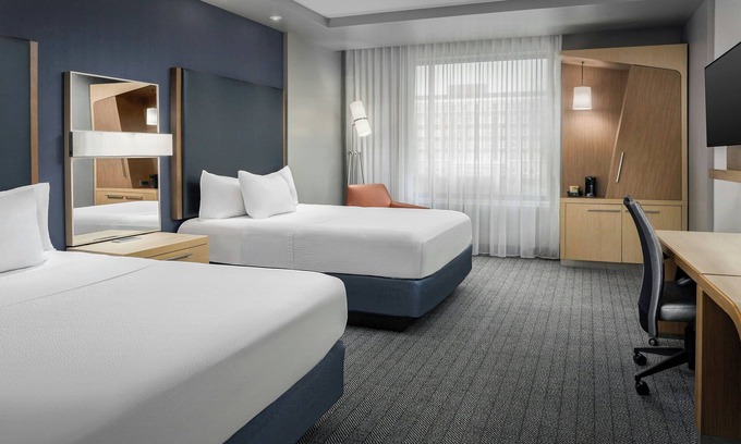 Courtyard Muncie at Horizon Convention Center offers 150 accommodations with safes and coffee/tea makers. Smart televisions come with premium cable channels and Netflix. Refrigerators and microwaves are provided. Bathrooms include shower/tub combinations and hair dryers.