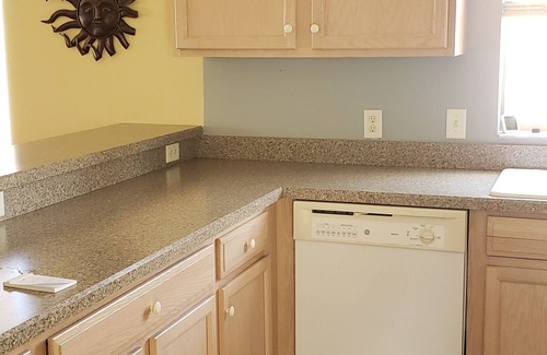 The living room provides comfortable seating and a 50 inch TV with WiFi for any home streaming services you would like to attach. The fully stocked kitchen includes everything needed to prepare home cooked meals including breakfast bar with stools.
