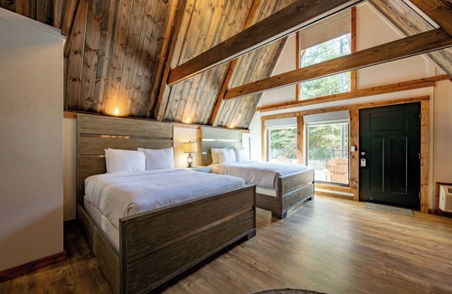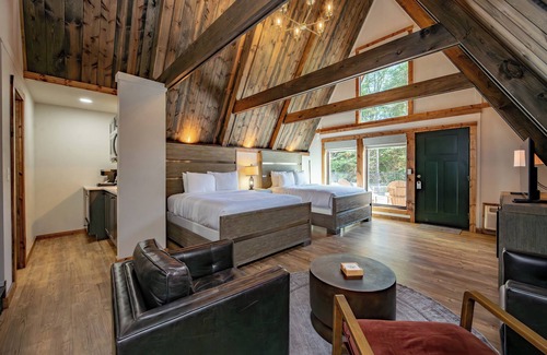 Cove Creek Lodge 214: Standard Double Queen Fireplace Room | Hotel in Oakland